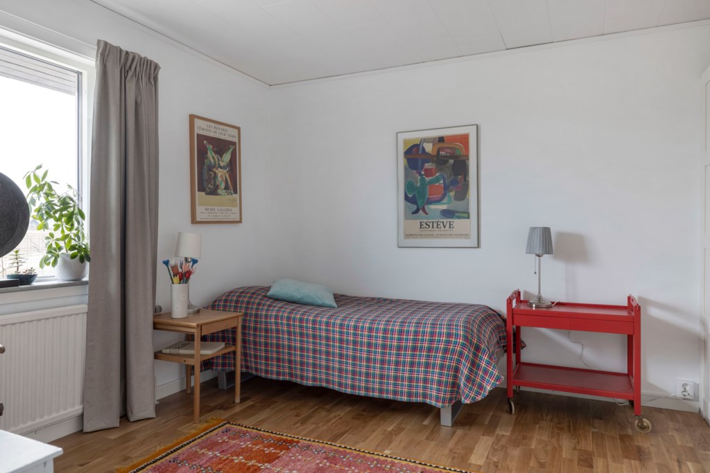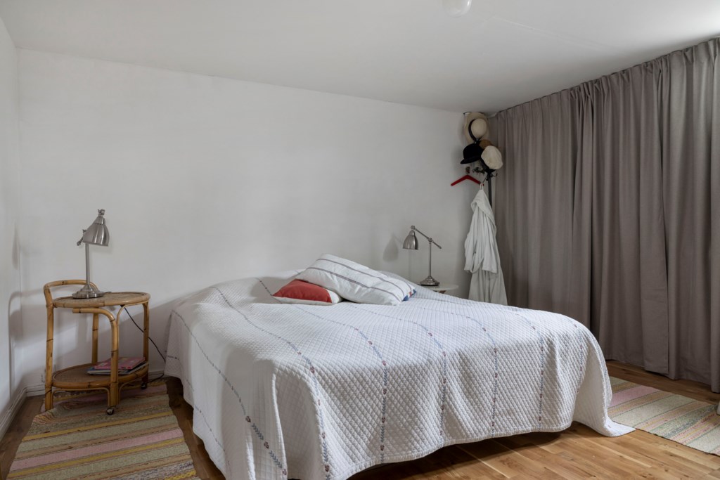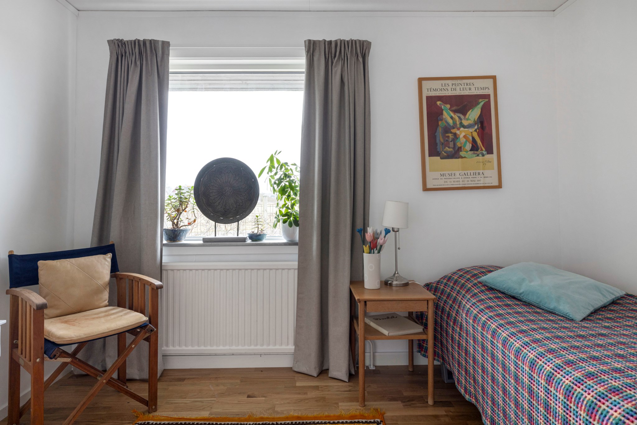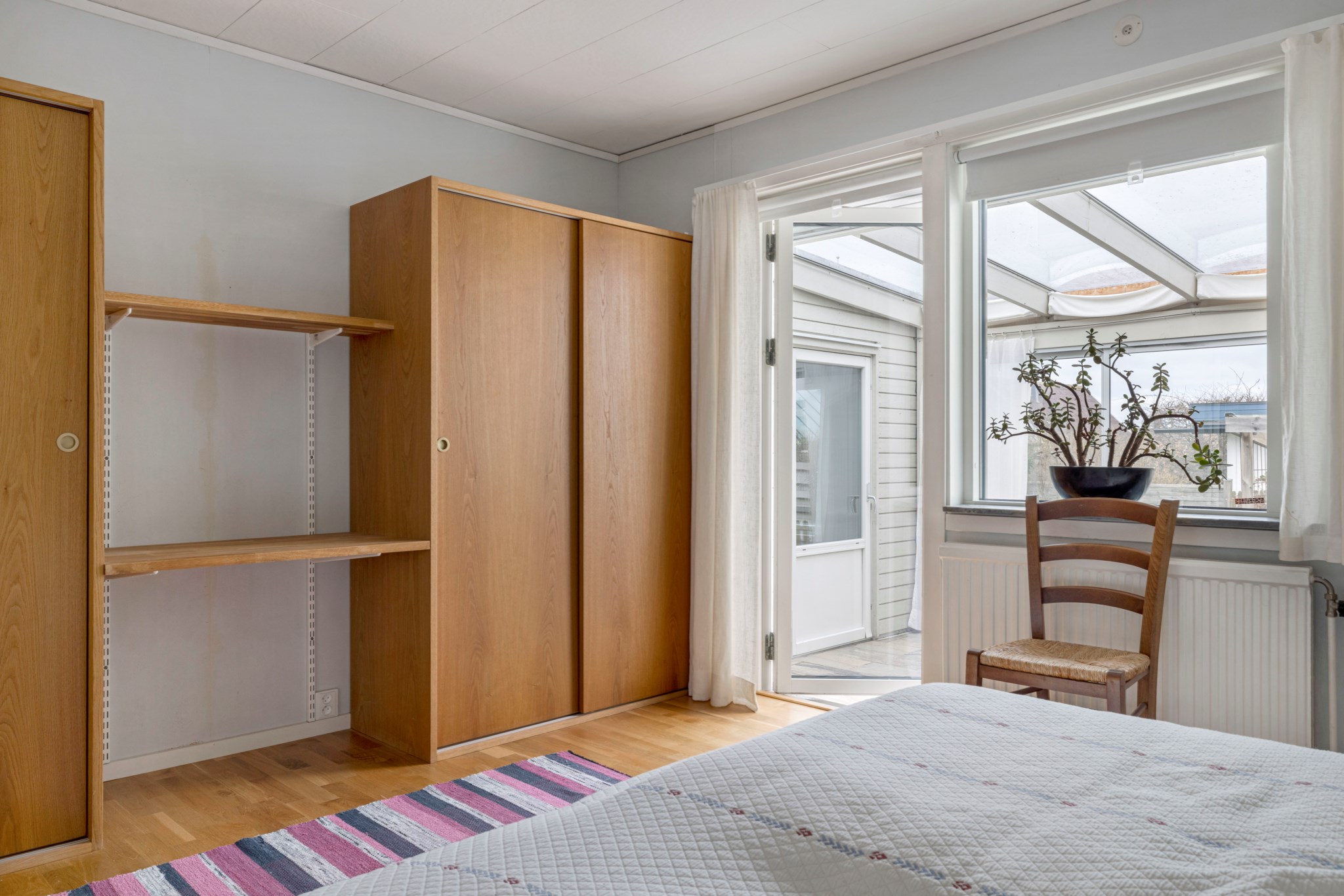 Entréplanet rymmer även ett rymligt master bedroom med praktisk garderobslösning samt ett ytterligare sovrum i nyare utförande med inbyggda garderober.