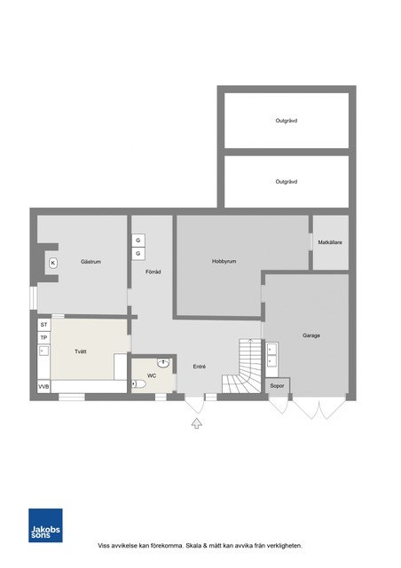 Suterrängplanet erbjuder en rymlig entré, separat WC, ett gästsovrum med kamin, stor tvättstuga, verkstad, vin-/matkällare samt direkt utgång till garage. Ett praktiskt och flexibelt plan med gott om utrymme för såväl vardagsliv som fritidsaktiviteter och förvaring.Kök